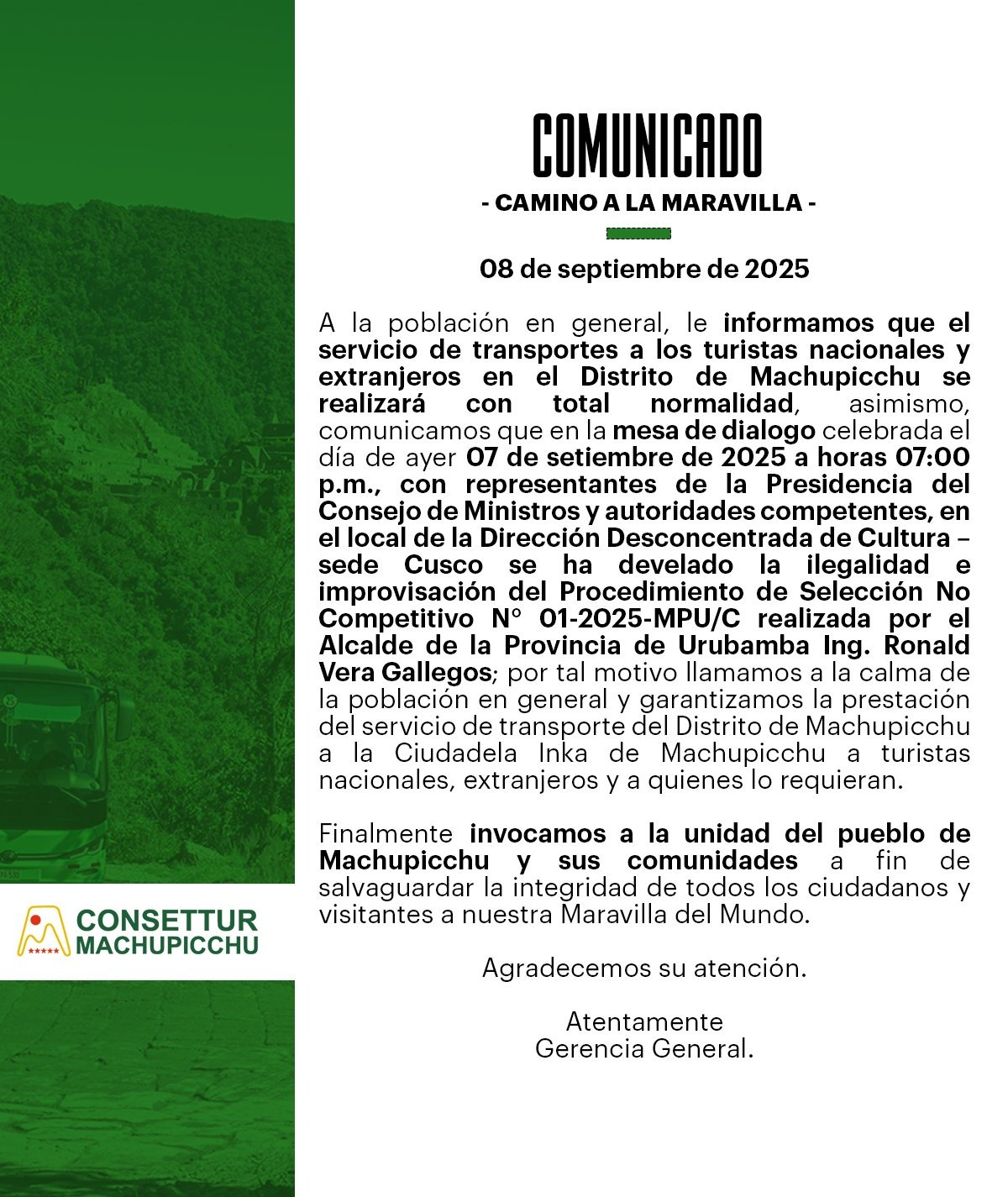 El pasado 5 de septiembre, la Municipalidad de Urubamba comunicó que San Antonio de Torontoy asumiría la operación por un período de cuatro meses. Sin embargo, sus 18 buses aún no están en la zona. Esta situación mantiene en alerta a operadores turísticos, quienes dependen de la regularidad del servicio para cumplir con itinerarios ya vendidos.