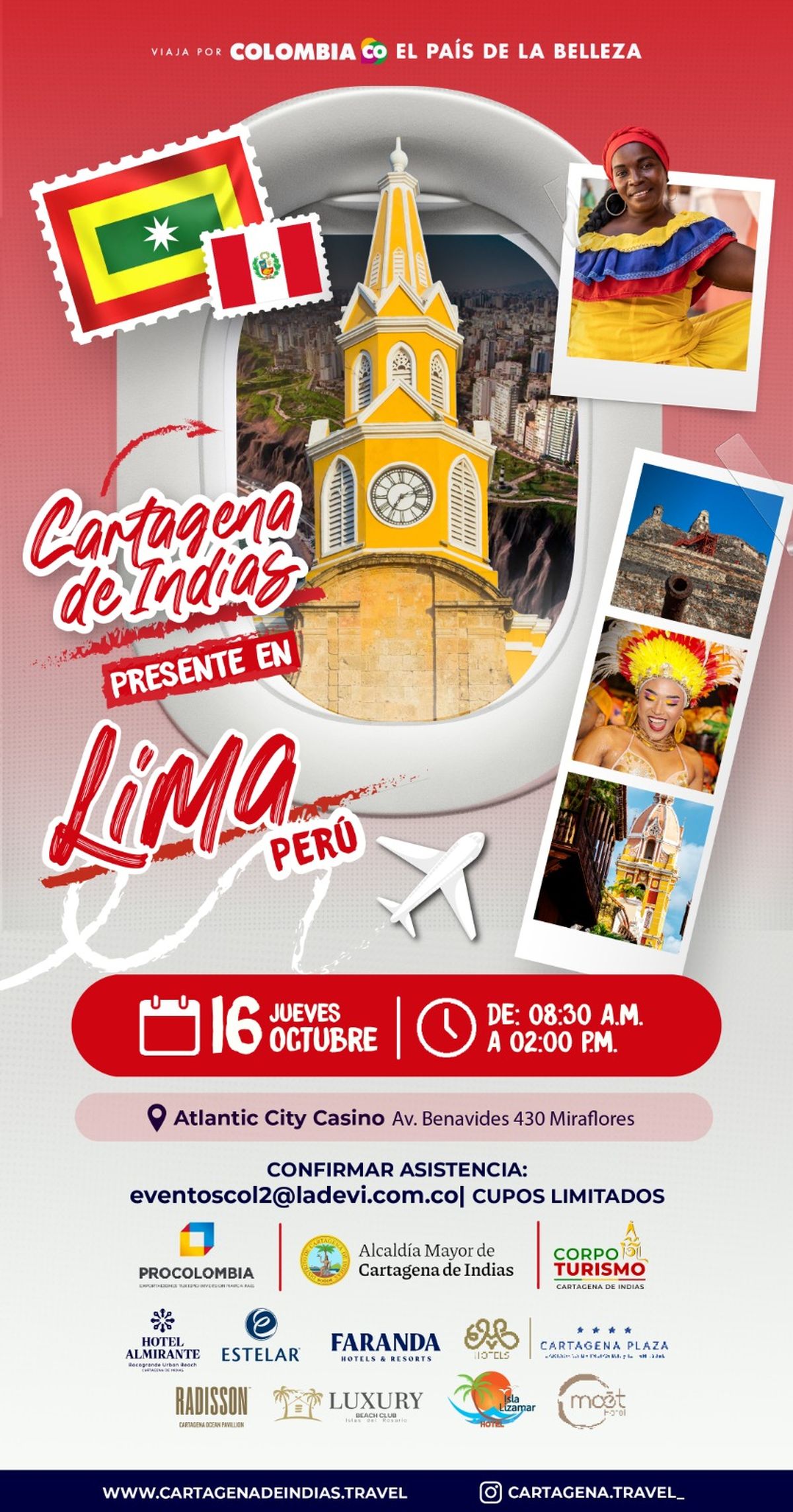 El evento contará con la presencia de ProColombia, la Alcaldía Mayor de Cartagena de Indias, CorpoTurismo y destacadas cadenas hoteleras como Hotel Almirante, Estelar, Faranda Hotels & Resorts, Radisson Ocean Pavilion, Luxury Beach Club, Isla Lizamar Hotel, Cartagena Plaza y Moet Hotel, entre otras marcas aliadas.