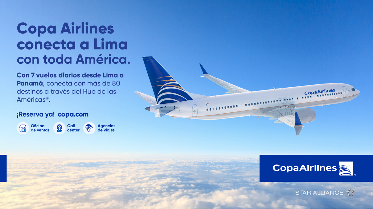 Copa Airlines anunció el incremento de sus frecuencias en la ruta Lima–Panamá, alcanzando siete vuelos diarios a partir de hoy 15 de enero de 2026, en respuesta al crecimiento sostenido de la demanda de conectividad internacional desde la capital peruana.